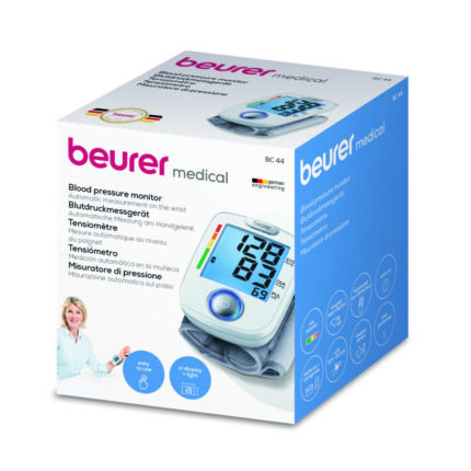 מד לחץ דם Beurer BC44 למדידה קלה ונוחה בפרק כף היד – עם תצוגה ברורה ואוטומטית.