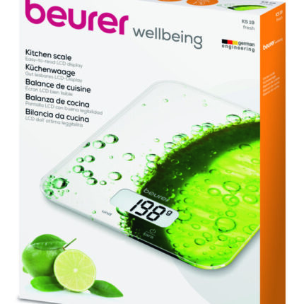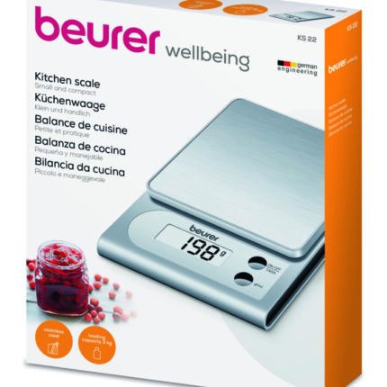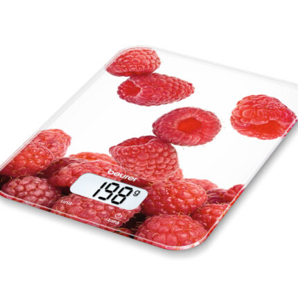 משקל מטבח Beurer KS19 BERRY – משטח זכוכית מעוצב, קומפקטי ונוח לשימוש יומיומי.