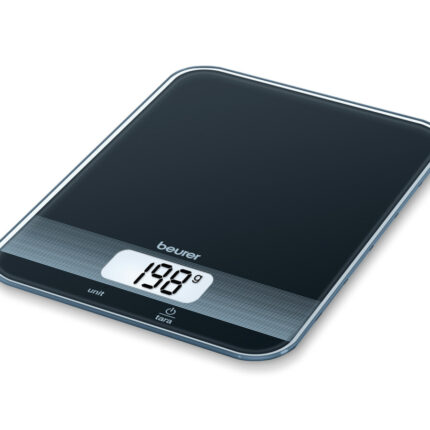 משקל מטבח דיגיטלי Beurer KS19 BL בעיצוב זכוכית – מדויק, דק וקל לניקוי.