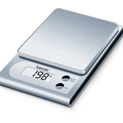 משקל מטבח Beurer KS22 – קומפקטי, פרקטי ונוח לאחסון.