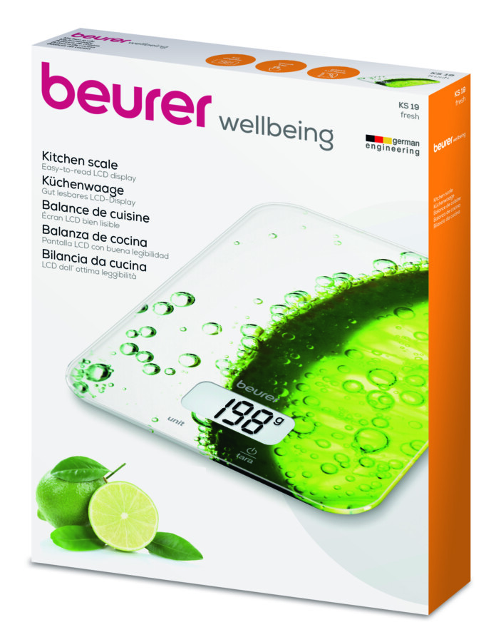 משקל מטבח Beurer FRESH – עיצוב צבעוני, מדויק ונוח לשימוש יומיומי.