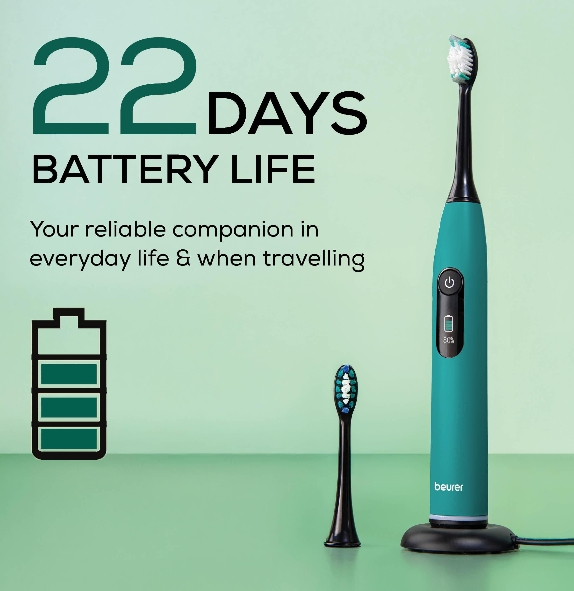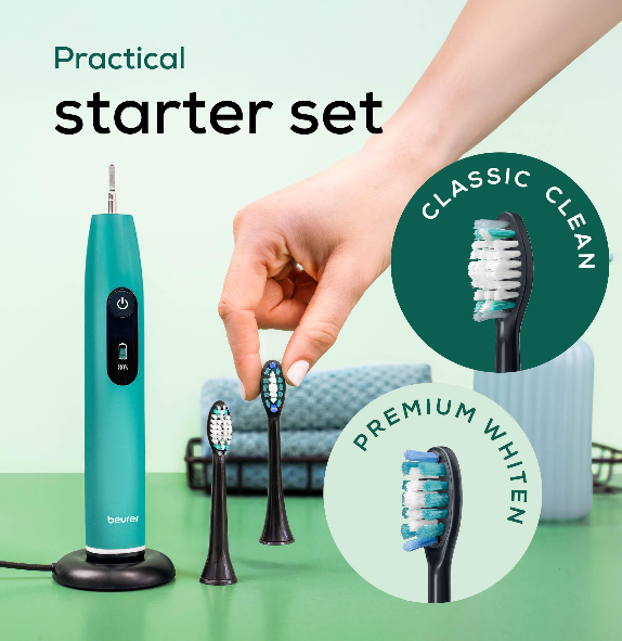 מברשת השיניים החשמלית SC 50 מבית המותג Beurer ברויר ישראל מספקת ניקוי יסודי אך עדין הודות לטכנולוגיה סונית מתקדמת עם עד 80,000 תנועות צחצוח בדקה. המברשת כוללת חיישן לחץ מובנה להגנה על השיניים והחניכיים, חמישה מצבי צחצוח להתאמה אישית וטיימר חכם לחלוקה נכונה של זמן הצחצוח. גוף המברשת עשוי מחומר ממוחזר, ומשלב ביצועים מתקדמים עם חשיבה סביבתית לשימוש יומיומי בבית ובנסיעות.